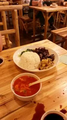 Reis mit Rindfleisch in Hoisin-Sauce - Asiaten mögen gerne kleine Stückchen Fleisch, für mich verkompliziert das die Sache eher. Ein 1. Date sollte man in Asien besser nicht im Restaurant haben.