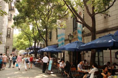 Eines der Paulaner in Shanghai, dort wird bereits für 3 Wochen Oktoberfest geworben. Ich bin gespannt.