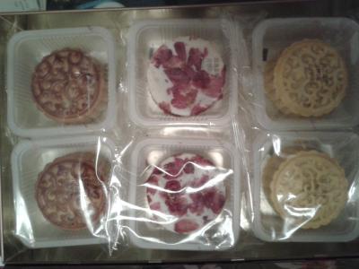 Das, was ich jedoch sowohl vor 2 Jahren wie auch dieses Jahr wieder hauptsächlich vom Mondfest mitbekomme, sind Mooncakes 月饼. Diese werden traditionell an diesem Tag gegessen. Mooncakes sind runde Küchlein mit verschiedenen Füllungen: Lotuspaste, Schinken, Nüsse, Enteneigelb,… :D Sie sind an der Oberfläche häufig mit Motiven wie Wolken oder dem Mond – also mit Motiven, die mit dem Feiertag verbunden werden - verziert. So wie vor 2 Jahren, habe ich es auch dieses Jahr wieder gehandhabt: Einfach mehr oder weniger blind Mooncakes aussuchen, essen und hoffen, dass es kein Eigelb oder Schlimmeres ist. Und auch dieses Mal habe ich wieder Glück gehabt und habe süßere Füllungen erwischt! Daher kann ich auch immer noch behaupten, dass ich die Küchlein mag, obwohl ein Ganzes häufig sehr intensiv und sättigend werden kann.