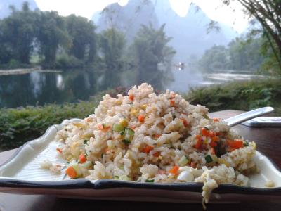 Unser Hotel in Yangshuo lag abgelegen von der Stadt, zwischen den Bergen an einem ruhigen Flüsschen namens Yulonghe 遇龙河. Sehr idyllisch, das Kontrastprogramm zu Shanghai. Wir haben unsere Zeit dort sehr genossen.